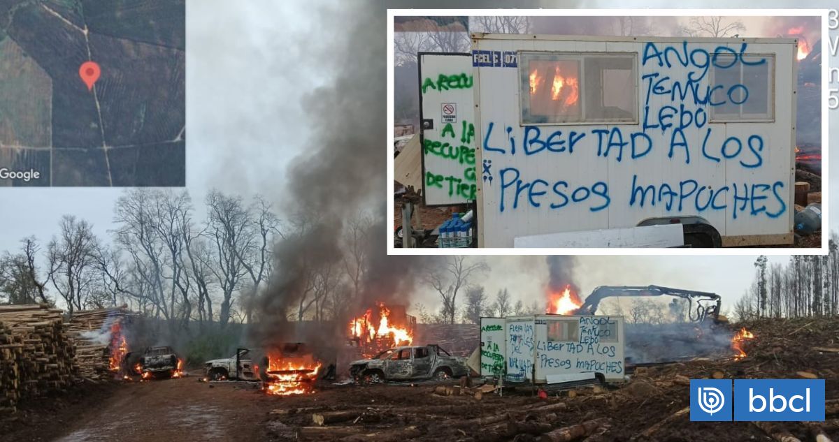 Siete vehículos y dos containers destruidos deja atentado incendiario en predio de CMPC en Mulchén