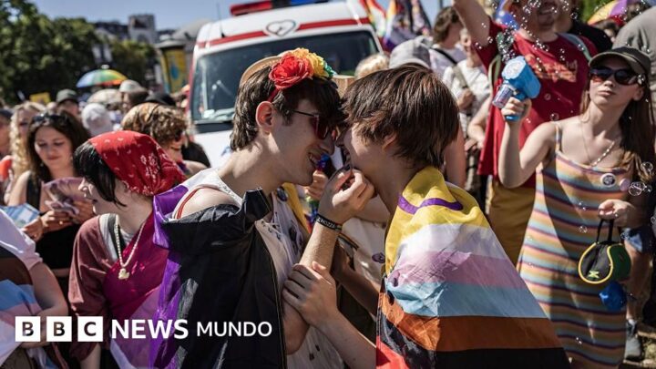 «Sé lo que se siente ser tratado como un paria»: la multitudinaria manifestación del Orgullo para desafiar las duras medidas contra la diversidad del gobierno de Orbán en HungríaLa policía prohibió la marcha, en cumplimiento con una nueva ley de «protección infantil», que restringe las reuniones que se considera que promueven la homosexualidad. Los organizadores estimaron una cifra récord de participación de 200.000 personas, a pesar de la creciente presión de políticos conservadores nacionalistas y la policía para impedir cualquier expresión de material pro LGBTIQ+. Ver el original de la noticia:
