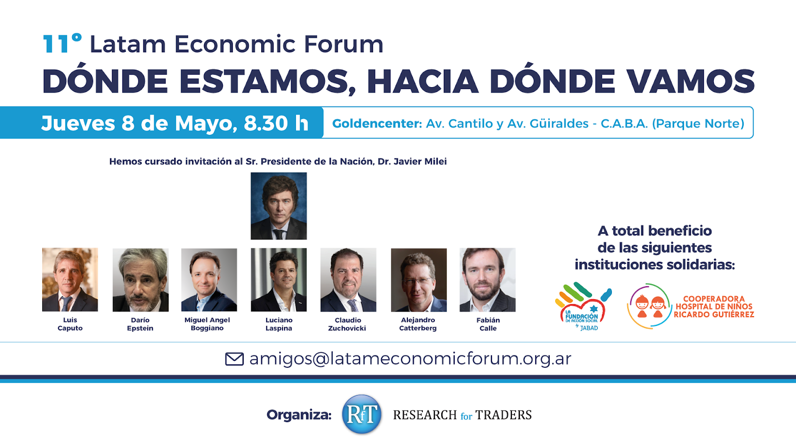 El presidente Javier Milei y el ministro de Economía, Luis Caputo, disertarán en la 11° edición del Latam Economic Forum en la sede porteña de Parque Norte sobre la realidad y los desafíos de la Argentina, a un año y medio de haber asumido el Gobierno. El tradicional evento con foco en economía y finanzas, organizado por la consultora Research for Traders bajo la consigna «Dónde estamos, hacia dónde vamos», se llevará a cabo el jueves 8 de mayo por la mañana y contará con la presencia de más de mil asistentes…