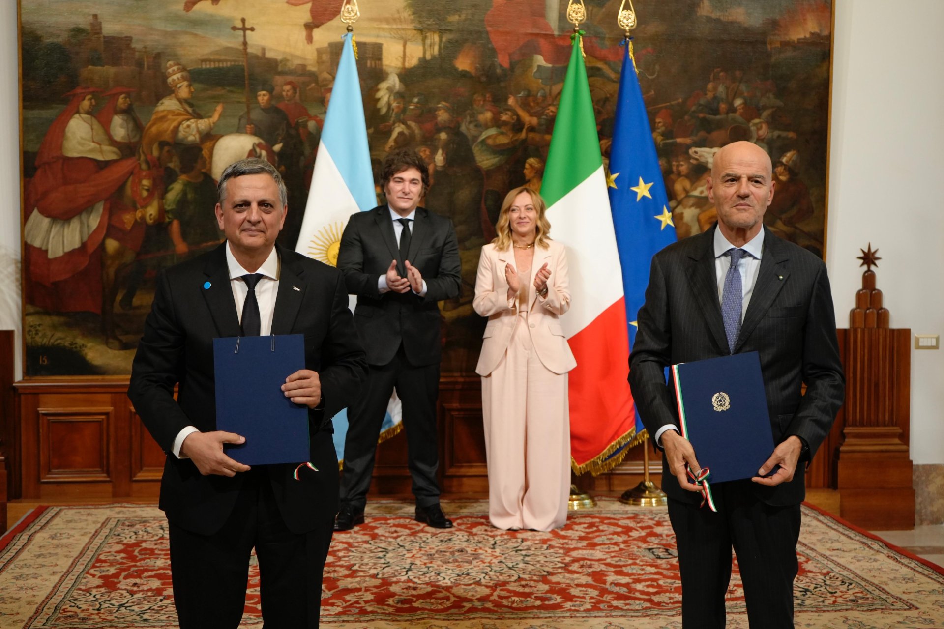 El presidente Javier Milei, junto a su par italiana Giorgia Meloni, supervisaron hoy la firma del acuerdo entre las compañías energéticas YPF y ENI para el desarrollo conjunto de una de las fases del proyecto «Argentina LNG». El acuerdo prevé exportaciones por mas de 100 mil millones de dólares para la Argentina, durante 20 años. Este nuevo paso en la relación estratégica entre ambas compañías implica la asociación conjunta en toda la cadena de valor del GNL, desde la producción del gas de Vaca Muerta…