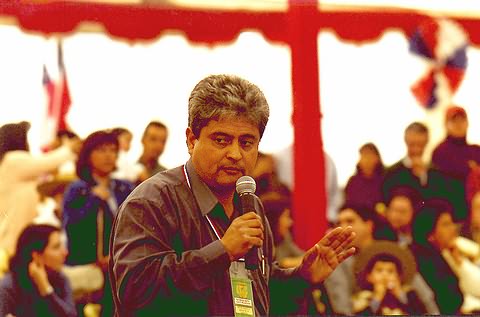 Patricio Soto, encargado de las actividades de la I. Municipalidad, animando el Concurso de Cueca Infantil.