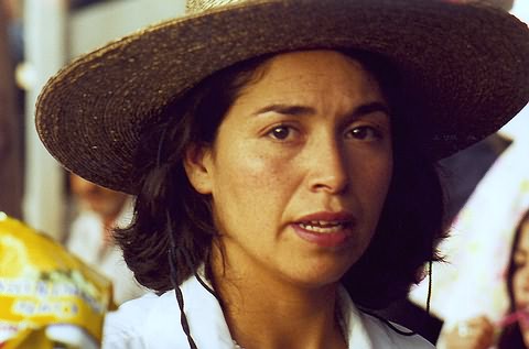 Interesante mujer vendedora de galletas y dulces durante las corridas.