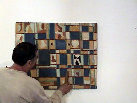 Antonio Bello limpiando una de las obras con una escobilla.