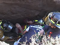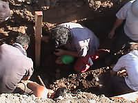 En la foto de la derecha podemos observar a un Bombero excavando con sumo cuidado alrededor de las piernas de Patricio, que estaban, una flectada bajo su cuerpo, y la otra estirada en una dirección difícil de determinar.