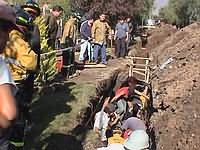A diferencia de un compañero que fue rescatado de inmediato, su situación se vio complicada por quedar presionado por un tubo de PVC de 12 pulgadas y seis metros de largo que fue cubierto por casi medio metro de tierra en toda su longitud.