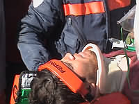 Patricio, agotado, probablemente no recuerda que en su viaje a la ambulancia fue entrevistado por periodistas de TVN.