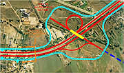 la Avenida del Valle. En azul, el nuevo trayecto de las calles de servicio. |