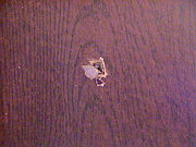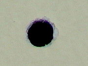 Arriba: orificio de ingreso del proyectil en muro del baño.