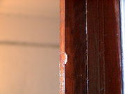 Abajo: marco de la puerta del baño donde rebotó el proyectil
